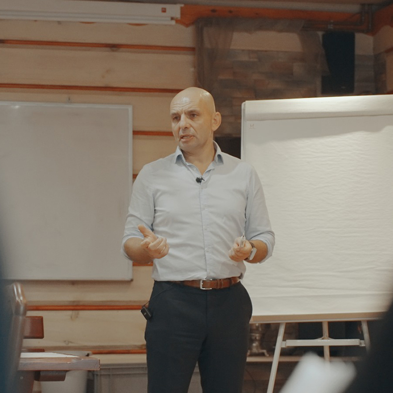 Wierzy, że skuteczność lidera zaczyna się od wewnętrznej spójności. Na szkoleniach uczy myśleć, działać i żyć jak człowiek kompletny – gotowy na wszystko.